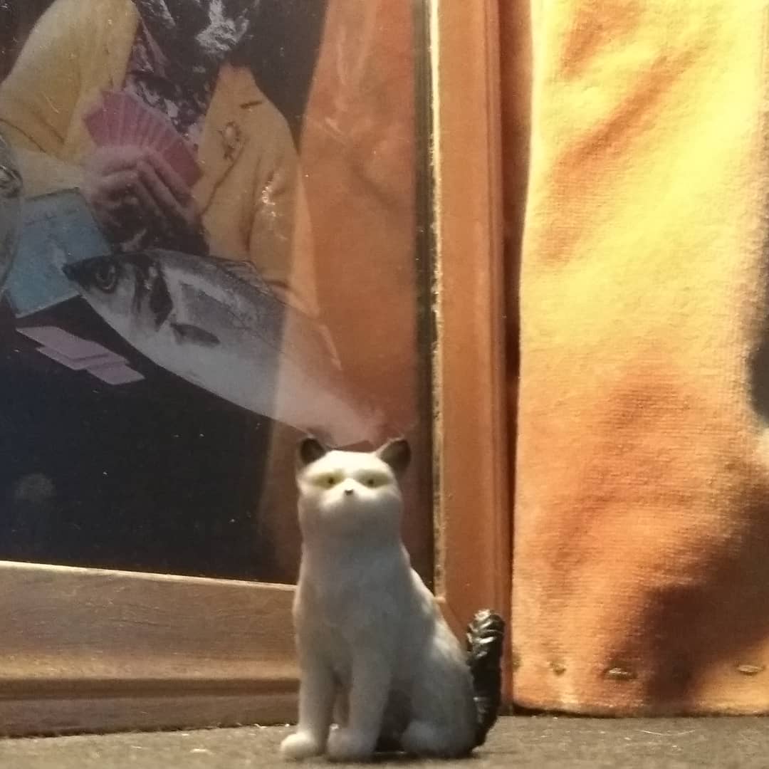 Susan Plover is drawn to creative and innovative curation in the light of gallery closures. She says “I was instantly drawn to show my work within a domestic setting in a miniature gallery viewed by cats”
