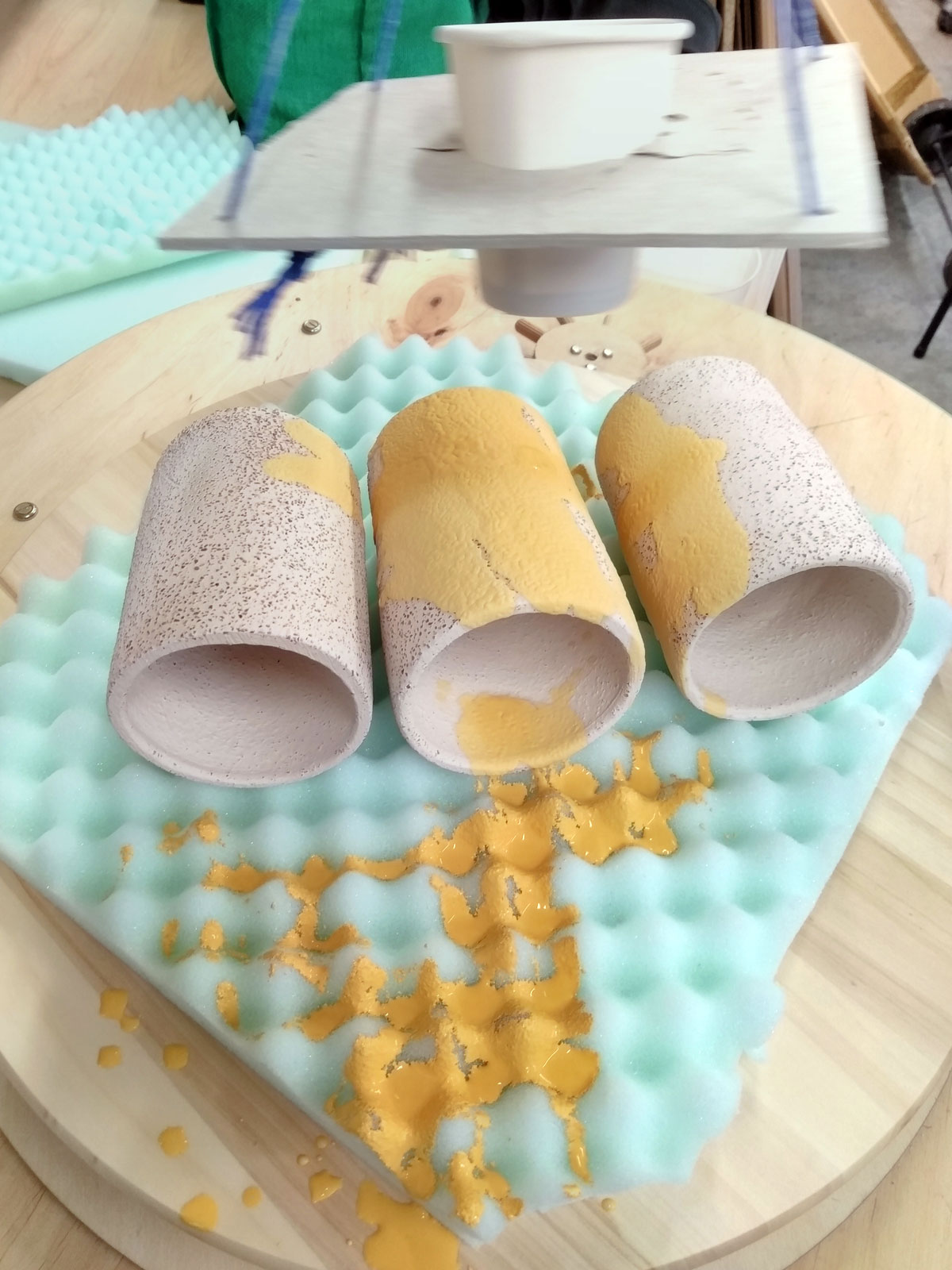 There are many variables that can be altered with slip consistency and textures can be subtle or more obvious. Alternatively, the shapes created on the turntable can be sliced and reformed to create three dimensional forms of the sounds.