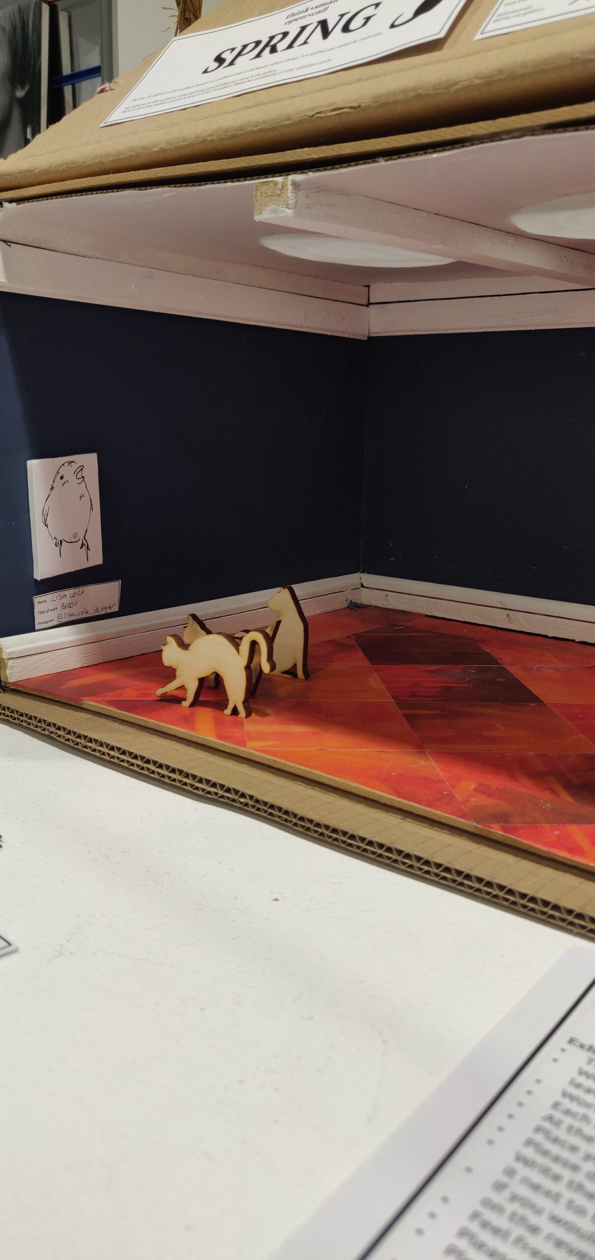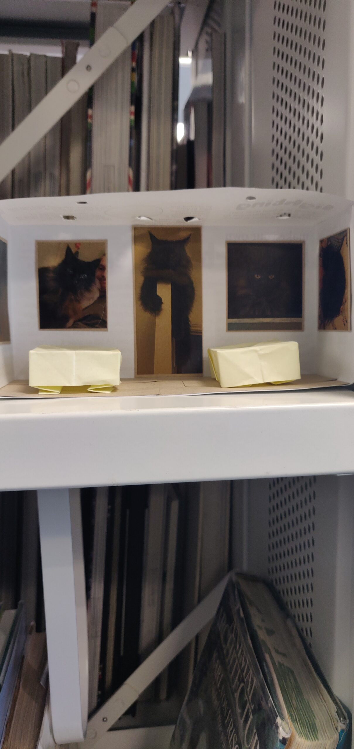 The Tiny Cat Gallery is a micro gallery housed in a cardboard recreation of a Georgian gallery. It is staffed and visited by small cats.
