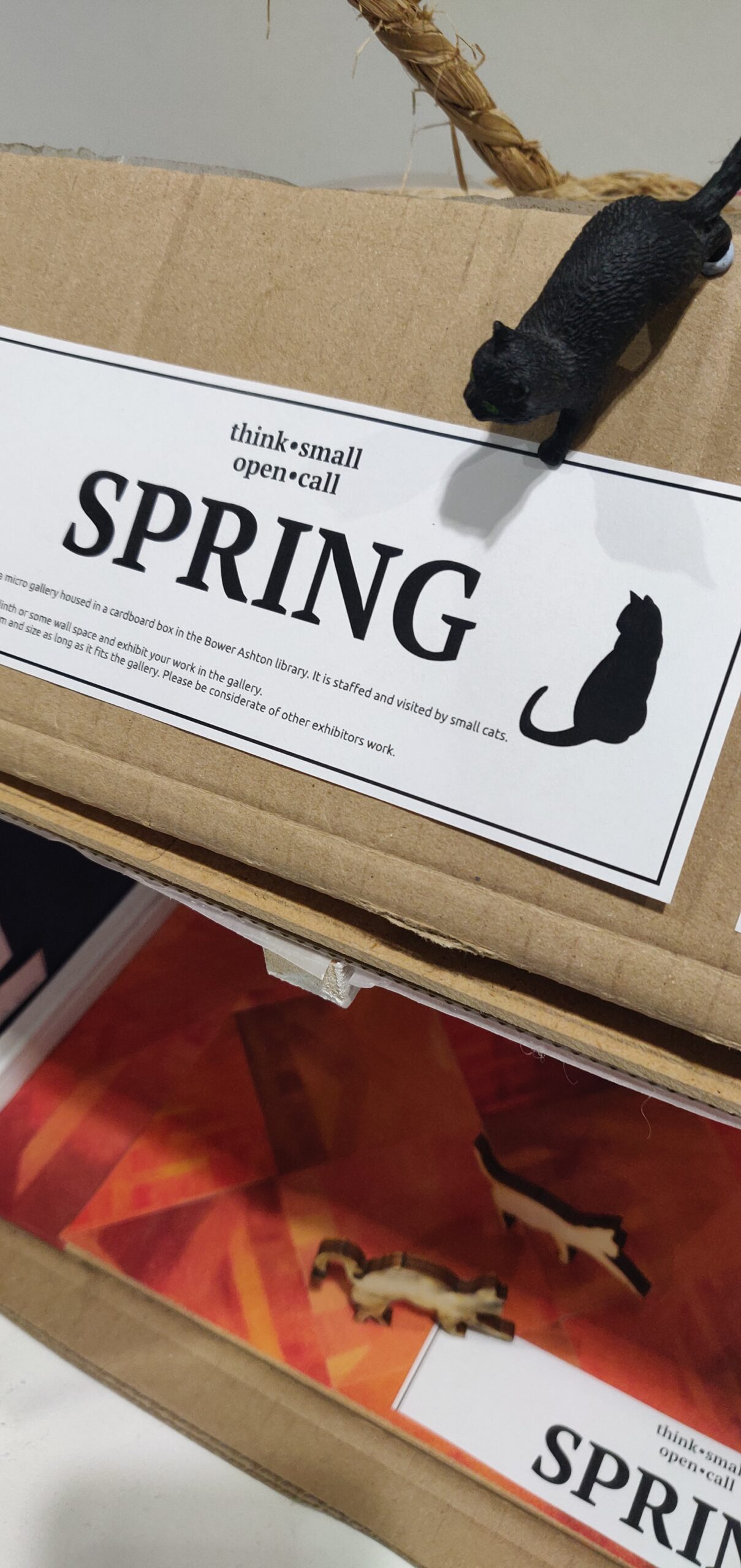 The Tiny Cat Gallery is at UWE Bower Ashton Library as part of an Artists Residency by Lisa Cole. There is an open invitation for students to add work to the gallery and/or to make their own micro galleries using this template.
